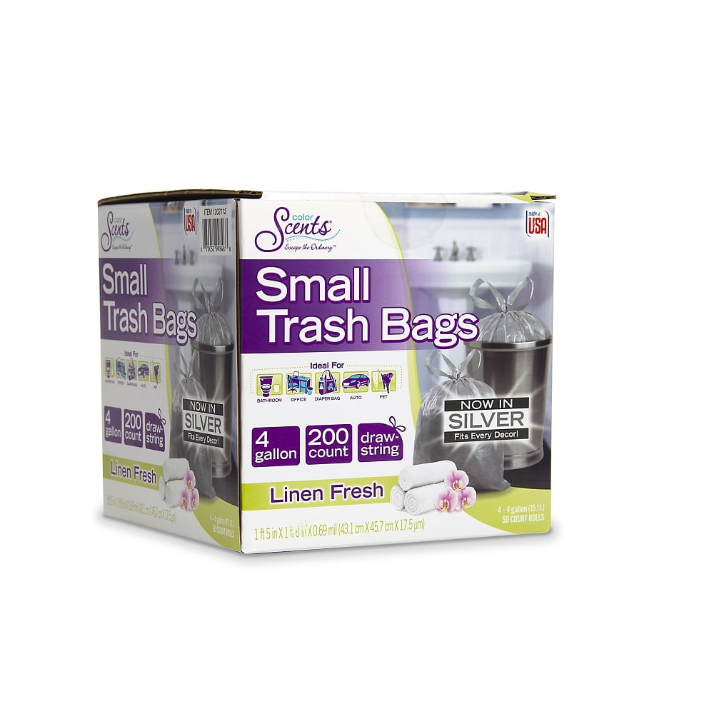 Small Trash Bags, 4 Gallon, 200 Bags (Drawstring, Linen Fresh Scent)